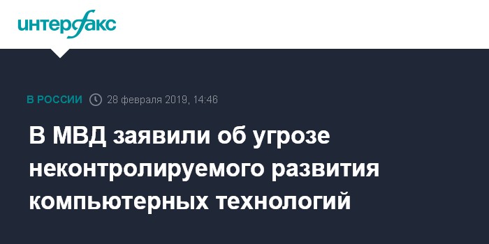 В МВД заявили об угрозе неконтролируемого развития компьютерных технологий