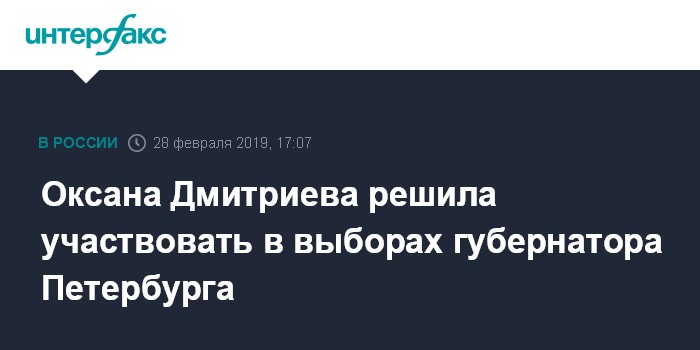 Оксана Дмитриева решила участвовать в выборах губернатора Петербурга