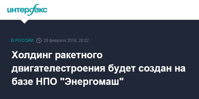Москва. 28 февраля. INTERFAX.RU - Наблюдательный совет "Роскосмоса" принял решение о создании на базе НПО "Энергомаш" холдинга ракетного двигателестроения, сообщили "Интерфаксу" в аппарате вице-премьера Юрия Борисова.