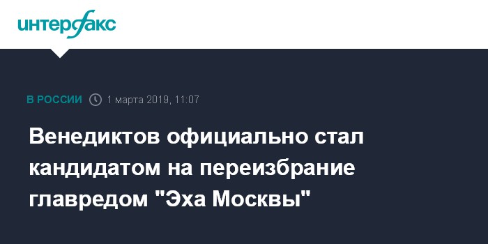 Ранее он сообщил, что выборы главного редактора на следующие пять лет, назначенные на 28 марта, пройдут на две недели раньше, то есть на 14 марта, так как юристы "Газпром-медиа" сообщили ему, что срок его полномочий истекает 17 марта. По его словам, эта дата была выбрана, чтобы Совет директоров успел утвердить избранного главного редактора радиостанции до 17 марта.