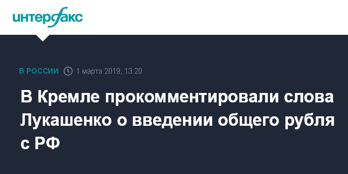 В Кремле прокомментировали слова Лукашенко о введении общего рубля с РФ