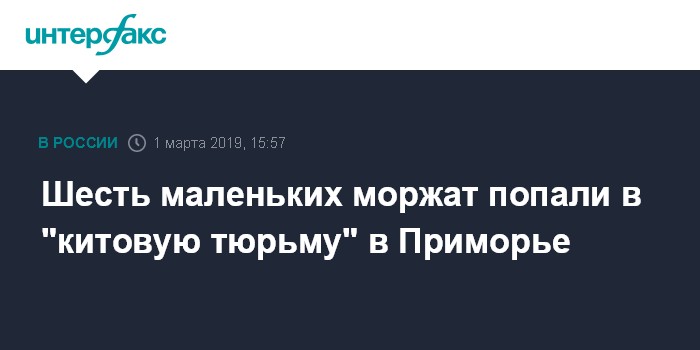 Москва. 1 марта. INTERFAX.RU - Отловщики морских млекопитающих, устроившие "китовую тюрьму" в бухте Средняя в Приморье, заявили, что у них, кроме косаток и белух, содержатся еще и моржи.