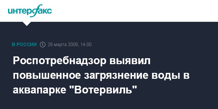Санкт-Петербург. 28 марта. INTERFAX.RU - В ходе проверки работы аквапарка "Вотервиль" Роспотребнадзор Петербурга установил, что бассейны в момент отравления были перегружены посетителями, а в воде содержались органические загрязнения. Кроме того, как говорится в сообщении ведомства, "система водоподготовки бассейна 26 марта (в этот день произошло массовое отравление посетителей - ИФ) действовала с максимальными дозами активного хлора, отмечена низкая эффективность работы фильтрационной установки".