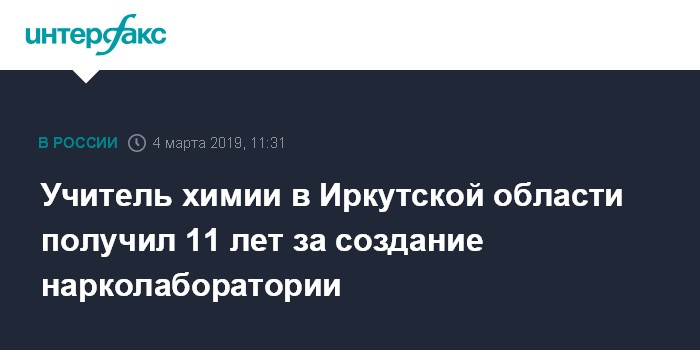 Учитель химии в Иркутской области получил 11 лет за создание нарколаборатории
