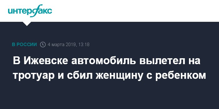 Москва. 4 марта. INTERFAX.RU - Женщина с ребенком попали под колеса "Лады Гранты", вылетевшей на тротуар в Ижевске в понедельник. Об этом сообщает 1-й отдел управления ГИБДД по Удмуртии.
