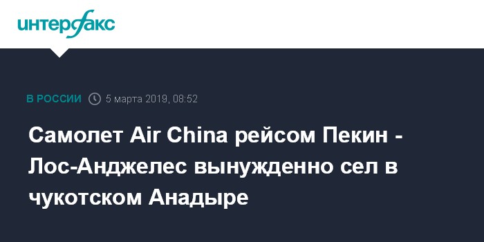 Самолет Air China рейсом Пекин - Лос-Анджелес вынужденно сел в чукотском Анадыре