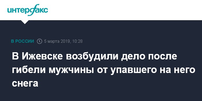 Ранее сообщалось, что по факту гибели мужчины от схода снега 1 марта прокуратура Удмуртии начала проверку соблюдения требований охраны труда и законодательства о благоустройстве территорий.