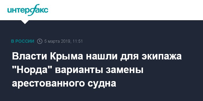 Москва. 5 марта. INTERFAX.RU - Крымский экипаж судна "Норд", как планируется, получит новое судно взамен арестованного Украиной сейнера, сообщил глава республики Сергей Аксенов.