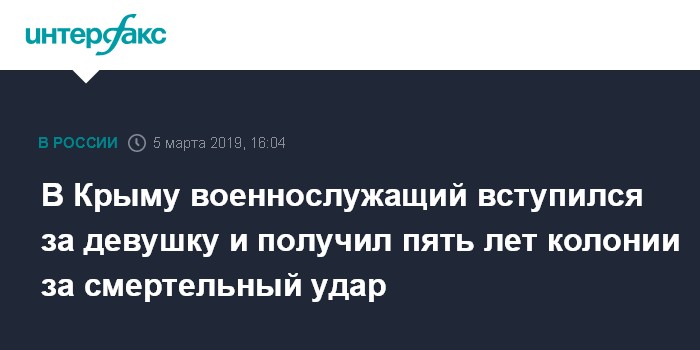 Москва. 5 марта. INTERFAX.RU - Крымский гарнизонный военный суд вынес приговор военнослужащему, который нанес мужчине смертельный удар возле одного из ночных клубов Симферополя в октябре 2017 года.