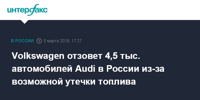 Volkswagen отзовет 4,5 тыс. автомобилей Audi в России из-за возможной утечки топлива
