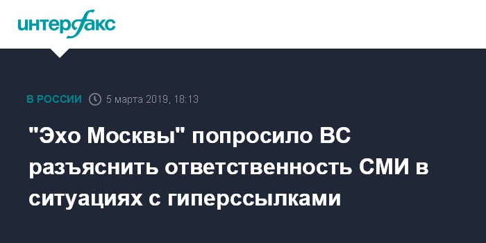 "Эхо Москвы" попросило ВC разъяснить ответственность СМИ в ситуациях с гиперссылками