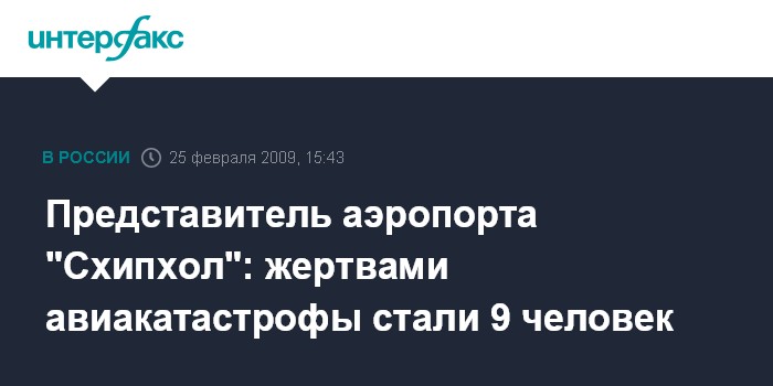 Представитель аэропорта "Схипхол": жертвами авиакатастрофы стали 9 человек