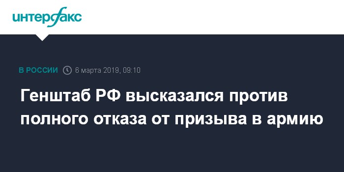 Москва. 6 марта. INTERFAX.RU - Полный отказ от призыва в армию в России нецелесообразен, заявили в Генеральном штабе.