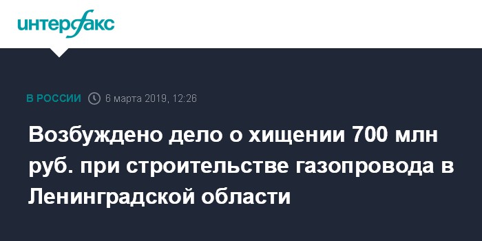 Возбуждено дело о хищении 700 млн руб. при строительстве газопровода в Ленинградской области