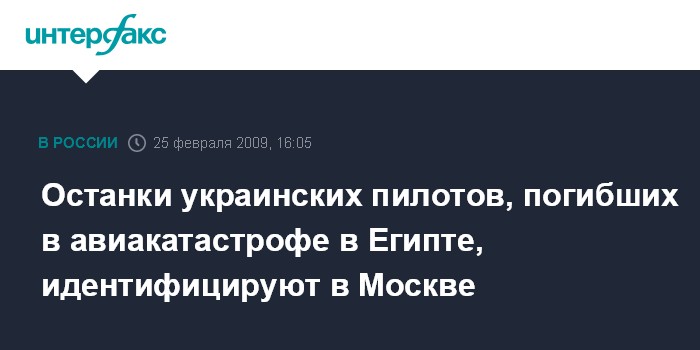 Киев. 25 февраля. INTERFAX.RU - Останки всех членов экипажа, в том числе двух граждан Украины, погибших в авиакатастрофе в Египте, будут отправлены из Каира в Москву 1 марта.