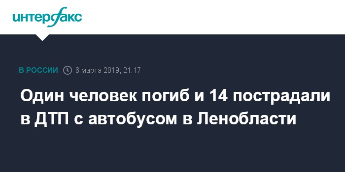 Москва. 6 марта. INTERFAX.RU - Один человек погиб и 14 пострадали в ДТП с участием рейсового автобуса в Волховском районе, возбуждено уголовное дело, сообщает в среду ГУ МВД по Санкт-Петербургу и Ленинградской области.