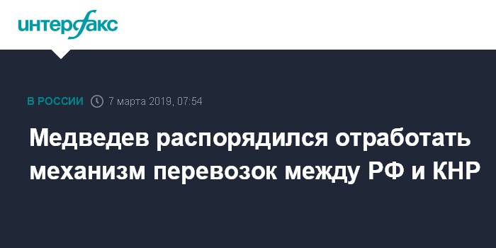 Медведев распорядился отработать механизм перевозок между РФ и КНР