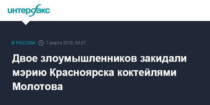 Двое злоумышленников закидали мэрию Красноярска коктейлями Молотова