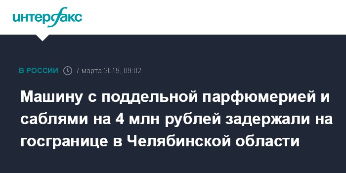 Машину с поддельной парфюмерией и саблями на 4 млн рублей задержали на госгранице в Челябинской области