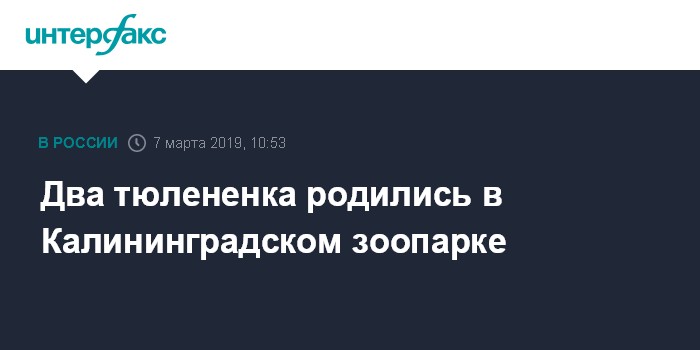 Москва. 7 марта. INTERFAX.RU - В Калининградском зоопарке на свет появились два детеныша балтийского тюленя, сообщила пресс-служба учреждения.