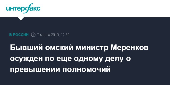 Москва. 7 марта. INTERFAX.RU - Суд в Омске вынес приговор бывшему министру имущественных отношений региона Вадиму Меренкову по делу о нарушениях при предоставлении участков под строительство, сообщила областная прокуратура.