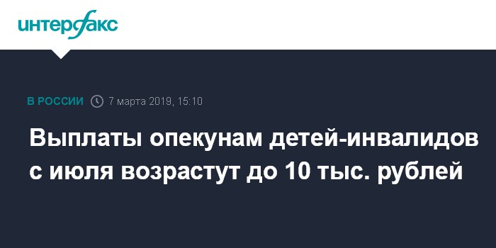 Выплаты опекунам детей-инвалидов с июля возрастут до 10 тыс. рублей