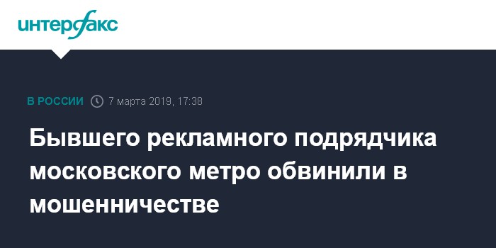 Бывшего рекламного подрядчика московского метро обвинили в мошенничестве