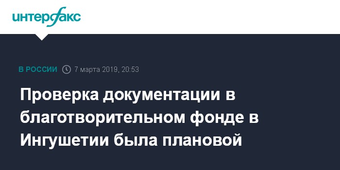 Проверка документации в благотворительном фонде в Ингушетии была плановой
