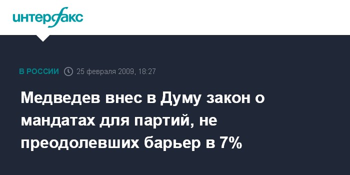 Медведев внес в Думу закон о мандатах для партий, не преодолевших барьер в 7%