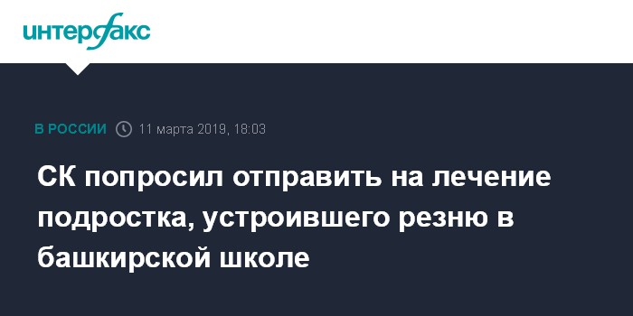 СК попросил отправить на лечение подростка, устроившего резню в башкирской школе