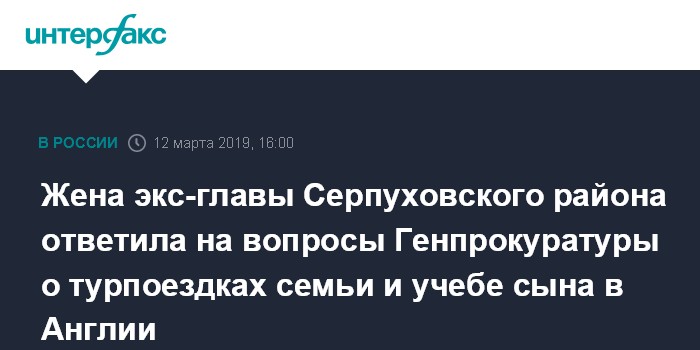 Жена экс-главы Серпуховского района ответила на вопросы Генпрокуратуры о турпоездках семьи и учебе сына в Англии