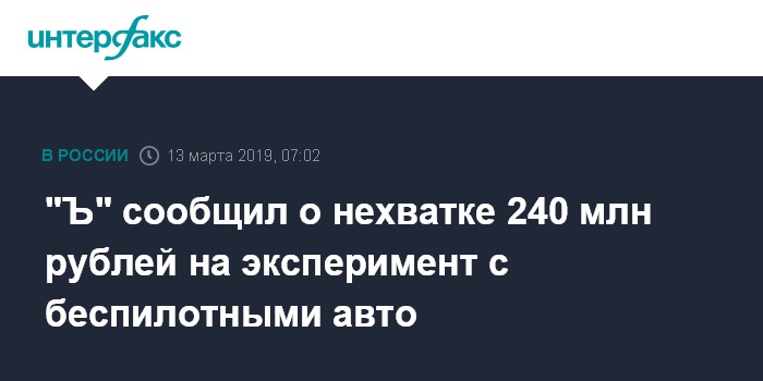 "Ъ" сообщил о нехватке 240 млн рублей на эксперимент с беспилотными авто