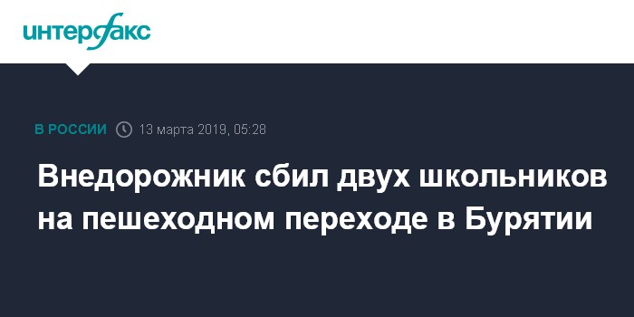 Москва. 13 марта. INTERFAX.RU - Внедорожник сбил двух школьников Улан-Удэ в среду утром, сообщает пресс-служба управления МВД по региону.