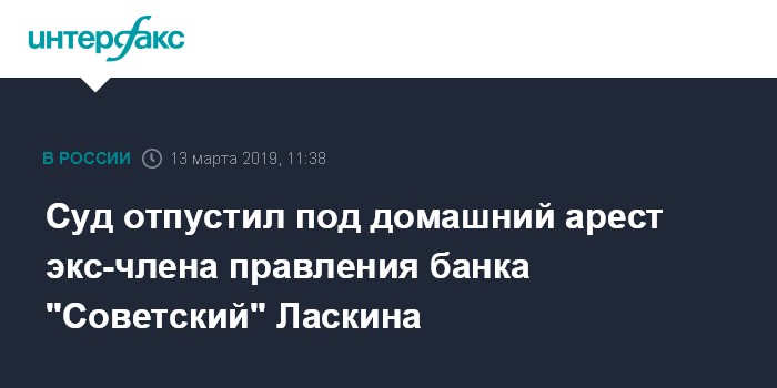 Cуд отпустил под домашний арест экс-члена правления банка "Советский" Ласкина