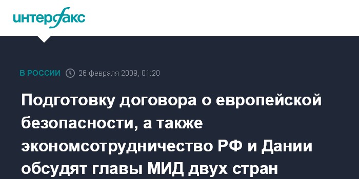 Подготовку договора о европейской безопасности, а также экономсотрудничество РФ и Дании обсудят главы МИД двух стран