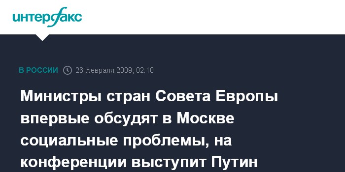 Министры стран Совета Европы впервые обсудят в Москве социальные проблемы, на конференции выступит Путин