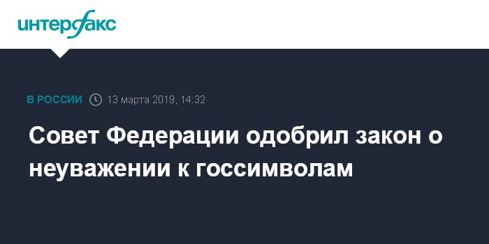 Москва. 13 марта. INTERFAX.RU - Совет Федерации на заседании в среду одобрил пакет законов о порядке ограничения доступа к информации, выражающей в неприличной форме неуважение к обществу, государству, официальным государственным символам РФ, Конституции РФ или органам власти.