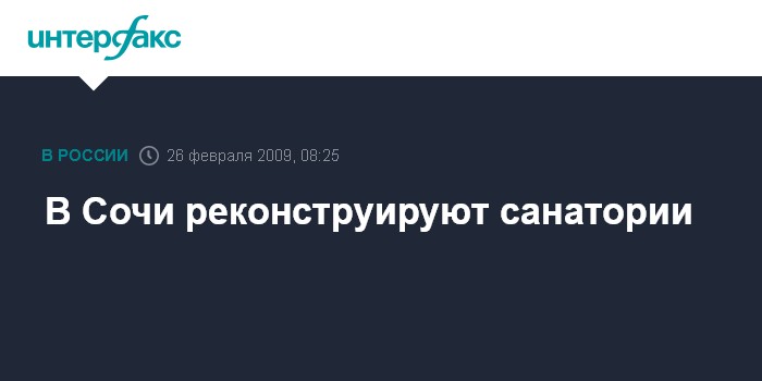 Москва. 26 февраля. INTERFAX.RU - В Сочи в 2009 г. будут реконструированы 8 объектов санаторно-курортного комплекса. "Реконструкцию пройдут санатории: "Сочи", "Русь", "Золотой колос", "СССР", "Солнечный луч", а также оздоровительный комплекс "Дагомыс", гостиница "Приморская" и пансионат "Изумруд", - сообщил агентству "Интерфакс-Юг" заместитель главы города Сочи Олег Ясюк.