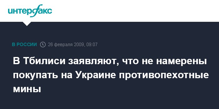 Москва. 26 февраля. INTERFAX.RU - В МВД Грузии опровергли информацию властей Южной Осетии о том, что глава МВД Вано Мерабишвили обратился к руководству украинской компании "Укрспецэкспорт" с просьбой заключить контракт на поставу запрещенных Женевской конвенцией противопехотных мин и мин-ловушек.