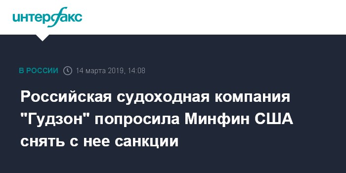 Москва. 14 марта. INTERFAX.RU - Российская судоходная компания "Гудзон" обратилось к властям США с просьбой исключить ее из санкционного списка, куда она попала в 2018 году за якобы имевшее место сотрудничество с КНДР, сообщил "Интерфаксу" заместитель гендиректора перевозчика Валерий Улискин.