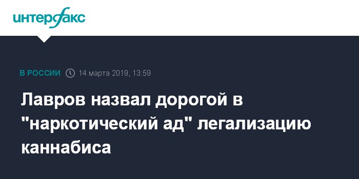 Москва. 14 марта. INTERFAX.RU - Легализация каннабиса во многих странах вызывает тревогу, это - прямой путь в "наркотический ад", заявил глава МИД РФ Сергей Лавров.