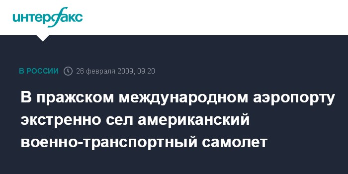 Москва. 26 февраля. INTERFAX.RU - Режим чрезвычайной ситуации вводился в ночь на четверг в пражском международном аэропорту "Ружине", сообщает чешская газета "Пражски деник" из-за экстренной посадки американского военно-транспортного самолета С17.