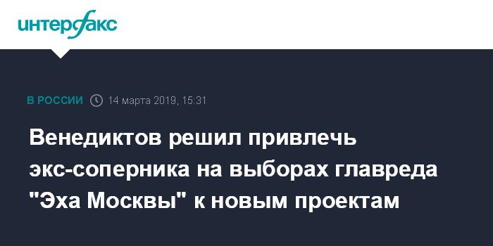Венедиктов решил привлечь экс-соперника на выборах главреда "Эха Москвы" к новым проектам