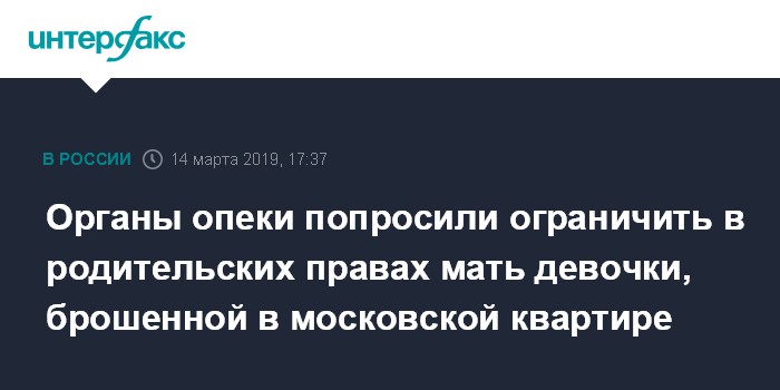 Органы опеки попросили ограничить в родительских правах мать девочки, брошенной в московской квартире