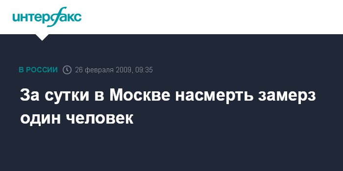 Москва. 26 февраля. INTERFAX.RU - Три человека пострадали от холодов в Москве за минувшие сутки, один из них скончался, сообщил "Интерфаксу" источник в медицинских кругах столицы в четверг.