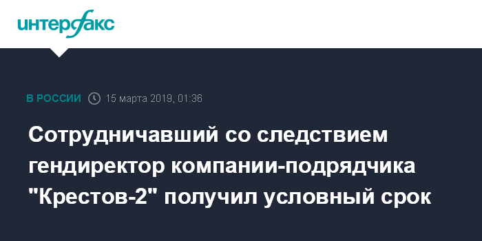 Сотрудничавший со следствием гендиректор компании-подрядчика "Крестов-2" получил условный срок