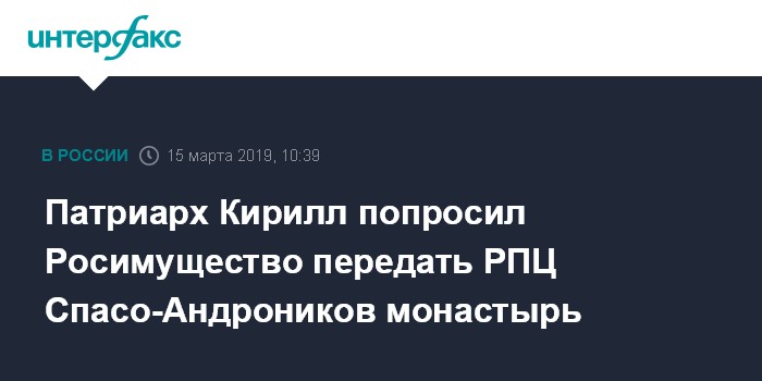 "29 января патриархом подписано письмо о передаче церкви комплекса зданий Спасо-Андроникова монастыря. Это не просьба. В соответствии с законом этого письма уже достаточно для передачи обители в церковное ведение", - отметил собеседник агентства.