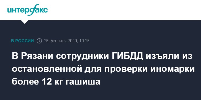 Москва. 26 февраля. INTERFAX.RU - В Московском районе Рязани сотрудники областного управления ГИБДД обнаружили в остановленном для проверки автомобиле, которым управлял неработающий гражданин, более 12 кг гашиша, сообщил "Интерфаксу" в среду источник в правоохранительных органах.