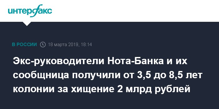 Экс-руководители Нота-Банка и их сообщница получили от 3,5 до 8,5 лет колонии за хищение 2 млрд рублей