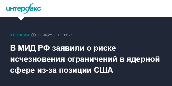 В МИД РФ заявили о риске исчезновения ограничений в ядерной сфере из-за позиции США